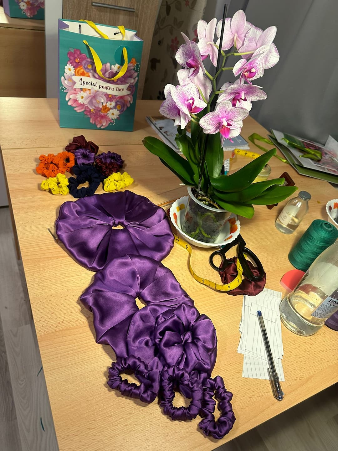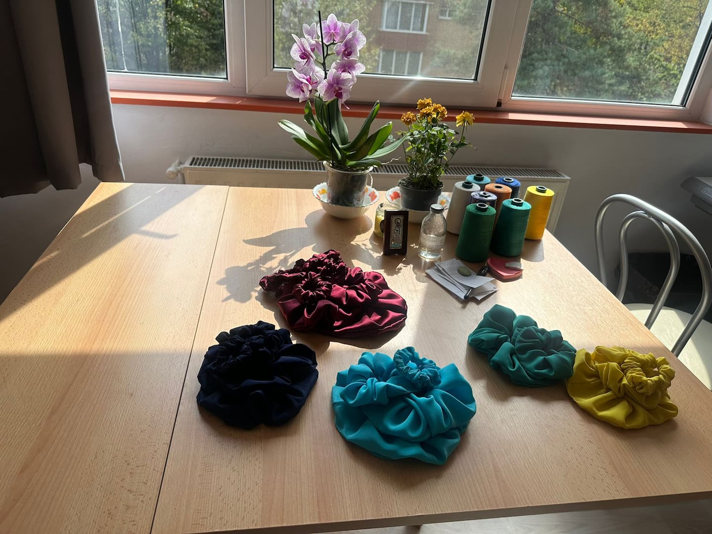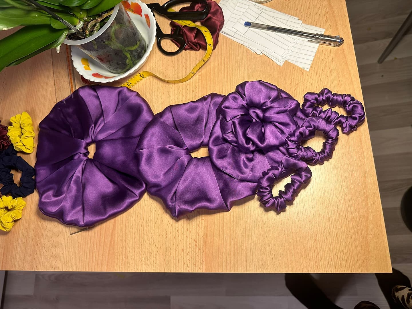 and made from real, natural materials. Everything felt either too harsh, too synthetic, or just not quite right. So I started sewing my own scrunchies using natural silk and quickly fell in love with the process.